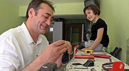 Antalya'da 6,5 aylık dünyaya gelip, 13 günlükken sol bacağı kesilen 6 yaşındaki kızı Özge'nin yürüyebilmesi için evinin tavanına 150 TL'ye maliyetle kurduğu düz