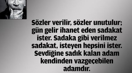 Güneşin sana ulaşmasını istiyorsan gölgeden çık. Aşk, dört nala giden at gibidir ne dizginden anlar ne söz dinler. Ya bir yol bul, ya bir yol aç, ya da yoldan